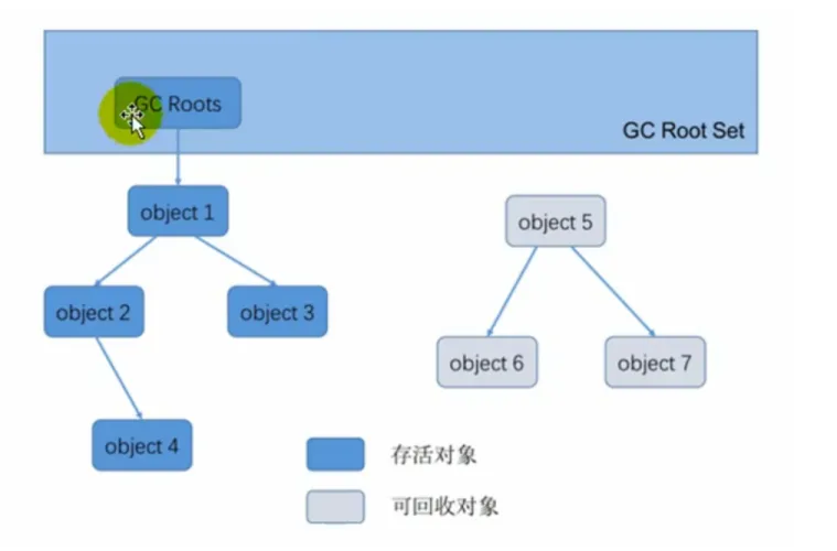 在可达性分析算法中,只有能够被根对象集合直接或者间接连接的对象才是存活对象。