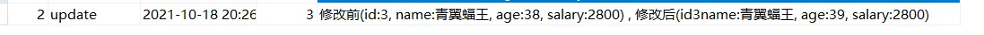 insert into emp_logs (id,operation,operate_time,operate_id,operate_params) values(null,'update',now(),new.id,concat('修改前(id:',old.id,', name:',old.name,', age:',old.age,', salary:',old.salary,') , 修改后(id',new.id, 'name:',new.name,', age:',new.age,', salary:',new.salary,')'));