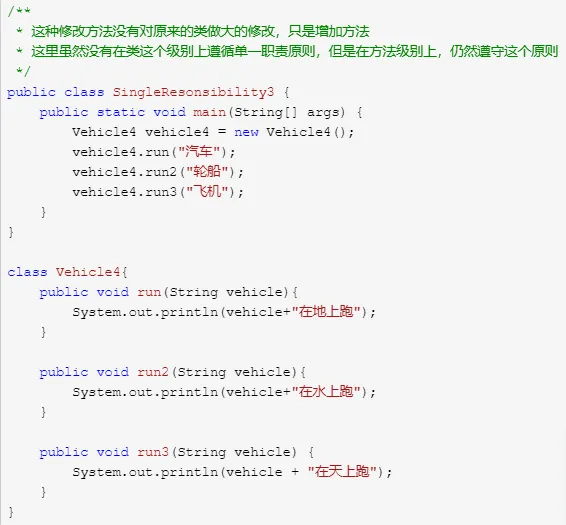 对类来说,一个类应该只负责一项职责。但如果类A负责两个不同职责,则当职责1需求变更而改变A类,可能造成职责2执行错误,所以需要将类A的粒度分解为A1,A2。