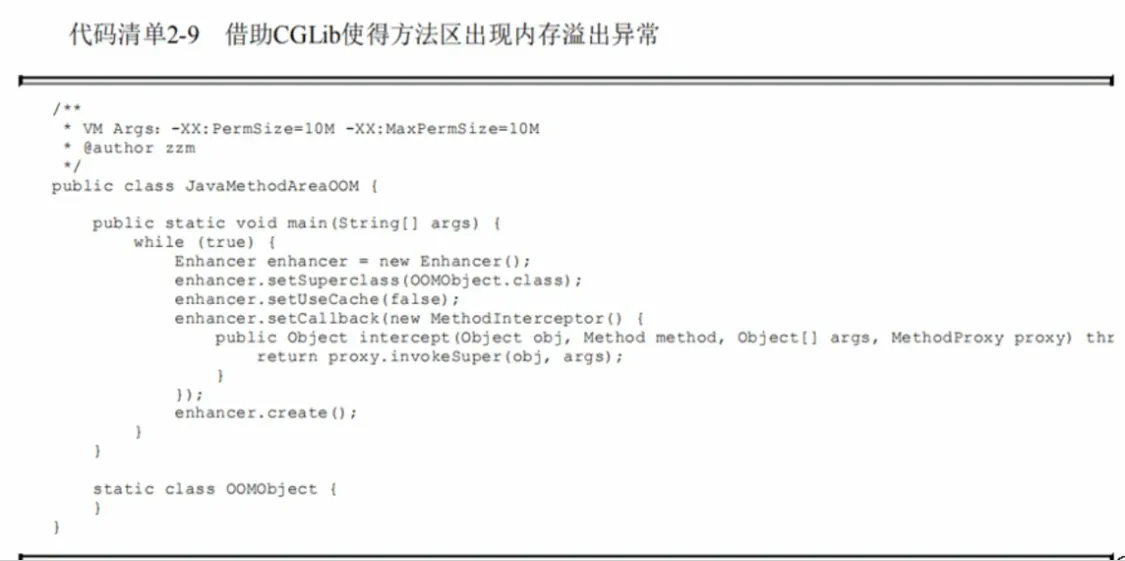 方法区的大小决定了系统可以保存多少个类,如果系统定义了太多的类,导致方法区溢出,虚拟机同样会抛出内存溢出错误: