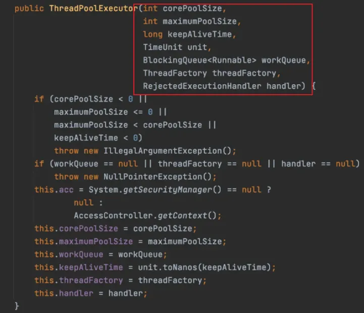线程池的构造其实很简单,就是传入一堆参数,然后进行简单的赋值操作。