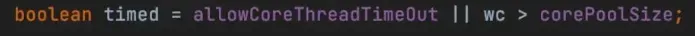 这行代码是判断,当前过来获取任务的线程是否可以超时退出。如果allowCoreThreadTimeOut设置为true或者线程池当前的线程数大于核心线程数,也就是corePoolSize,那么该获取任务的线程就可以超时退出。