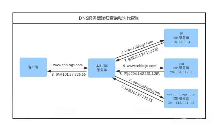 实在没办法,本地 DNS 服务器会将请求转发到互联网上的根域,下面这个图很好的诠释了整个流程: