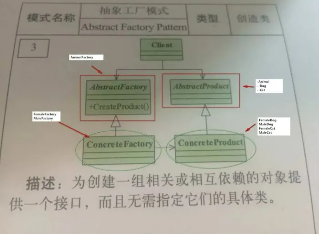 所以FemaleAnimalFactory定义了createDog()和createCat()生产母狗和母猫